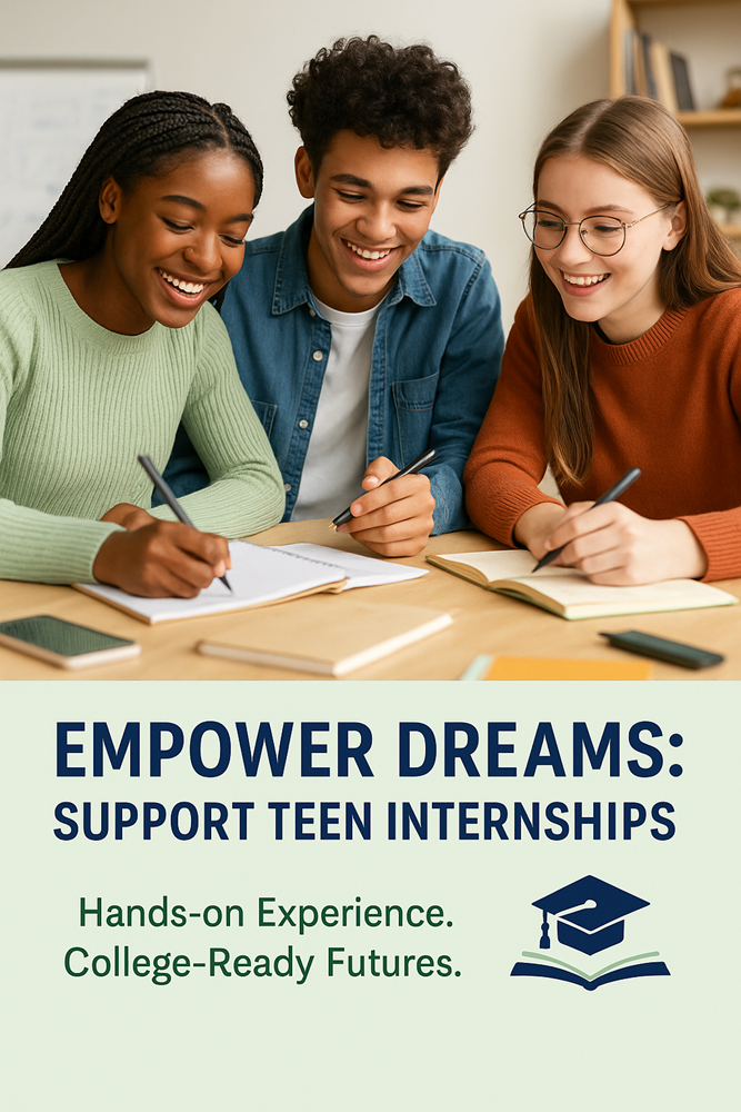 Invest in the next generation of leaders! Teen internships provide real-world experience, mentorship, and professional development for young people, preparing them for the future workforce. Your donation of $500 will sponsor part of a teen’s internship, offering them the chance to develop valuable skills, build their resume, and gain hands-on experience in a field of their choice all while receiving college bound rosources. This investment not only impacts the teen’s future but also helps cultivate a skilled, confident, and capable workforce for tomorrow. Support a teen’s journey to success! Sponsor an internship and empower the next generation of leaders.
